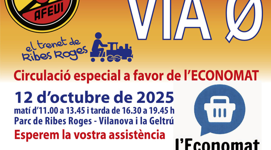El proper diumenge 12 d’octubre de 2025 d’11:00 a 13:45 i de 16:30 a 19:45 els Amics del Ferrocarril de Vilanova i la Geltrú – AFEVI celebraran al circuit del Parc de Ribes Roges la seva jornada de la Via 0 a favor de l’Economat.