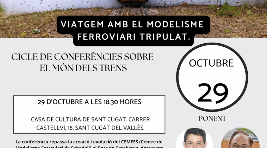 El proper dimecres 29 d’octubre de 2025 a les 18:30 hores es durà a terme una conferència amb el títol “Viatgem amb el Modelisme Ferroviari Tripulat”, a càrrec de Gerard Vall i Jaume Circuns, organitzada per l’Associació d’Amics del Ferrocarril de Sant Cugat del Vallès conjuntament amb la FCAF. L’acte …